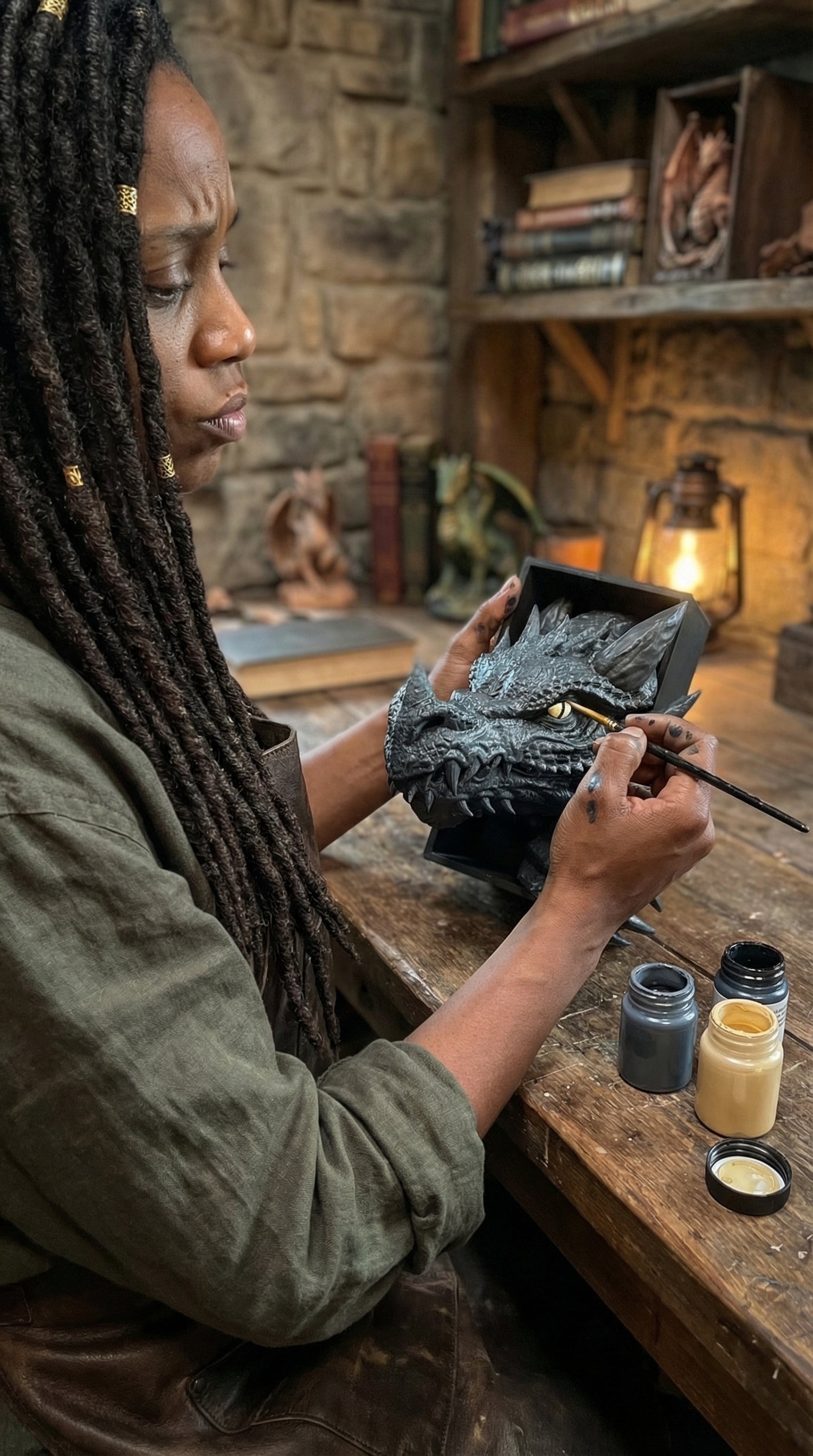 I carve every dragon book nook by hand in my workshop. I shape the wood, carve every scale, and bring each dragon to life one detail at a time. No factory, no assembly line — just me, my tools, and the quiet patience of the craft. Each one takes days to finish. I won’t send out anything I wouldn’t proudly place on my own shelf. 🐉📚
