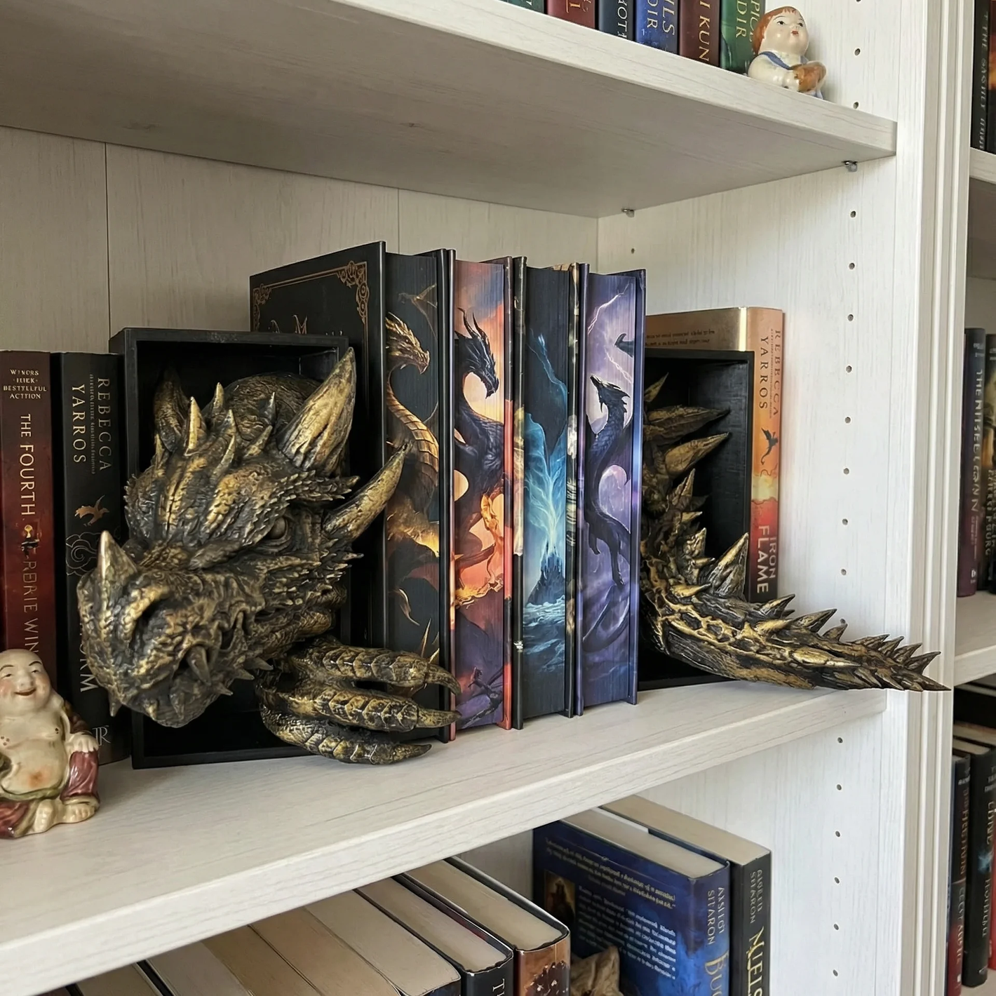 ou receive both pieces — the dragon head bookend and the matching dragon tail bookend. Books are not included.